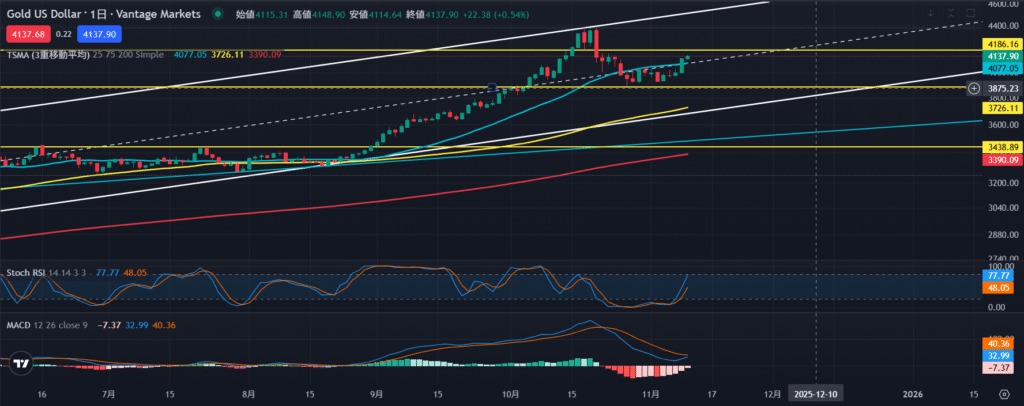 - ゴールド(XAU):4,115.90ドル/oz[^3^]