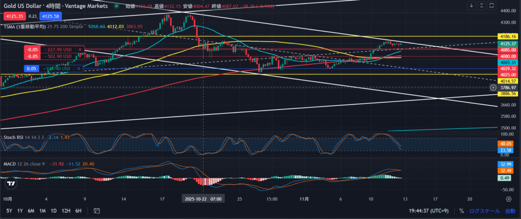 下限3886$、上限4186$の幅で推移しているブロック相場で推移中